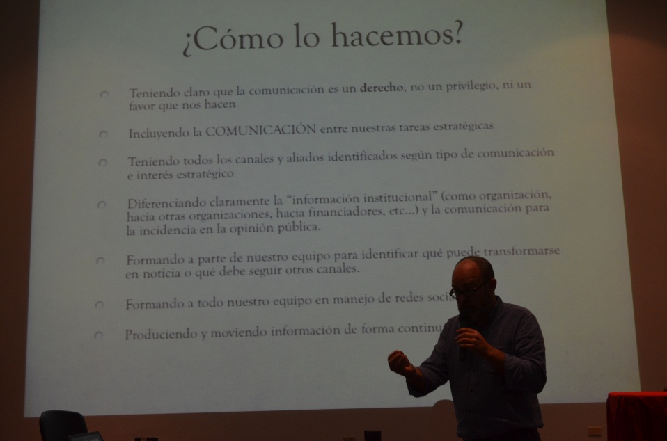 El espacio contó con la participación del comunicador social español Paco Gómez Nadal, quien expuso la importancia que tiene en la actualidad el desarrollo y fortalecimiento de procesos comunicativos independientes[1] en la narración de acontecimientos desde una perspectiva que reivindique los derechos, la identidad de las comunidades, rompiendo con la lógica hegemónica de la comunicación tradicional.